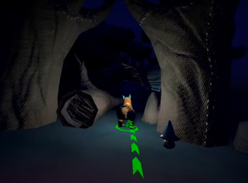 The theme is"It takes 2" and you'll soon realize that it definitely takes two characters (you and your imaginary carnotaurus pet) to find your way home in this dark forest.